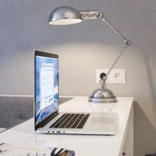 Най -добрият вариант за осветяване на работното място е тъмен сферичен или коничен нюанс, който осветява работното място най -удобно. Това правило важи за бюрото, където се прави домашната работа, и за бюрото на ръкоделието или чертожника, както и за работната зона на майстора на маникюра. Кракът на такава лампа е желателен на пантите, така че височината на лампата и ъгълът на наклон да могат да се регулират..