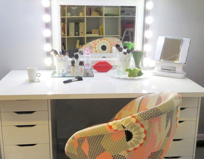 Осветително тяло за тоалетка или грим маса трябва да създава както интензивна, така и мека светлина, възможно най-близо до естествената светлина. Най -добре е да се спрете на модели, които не са покрити със сенки и са инсталирани на нивото на очите от няколко страни едновременно. Препоръчителното разстояние е 1 метър, мощността е до 100 W. Оптималното решение за тоалетката е художествено огледало, което вече е комбинирано с матови нюанси, които осветяват лицето от всички ъгли, като по този начин се избягват сенките.