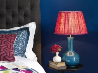 Червеното, розовото, кораловото са акцентни цветове, които не изискват други декоративни елементи освен тях самите. Същото ярко цветно петно може да бъде синьо, лилаво, богато жълто, смарагд, гранат. Лампи от тези цветове са подходящи за хол и кухня.