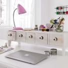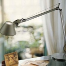 Работната лампа трябва да е със среден размер, трансформираща се и дискретна. Лаконичната лампа обаче не е непременно скучна. Може да бъде направен в интересна форма, например хартиен китайски фенер с регулируема височина, кръгъл прозрачен сенник с оригинална крушка вътре, обикновена лампа с пластмасов и текстилен сенник върху сложен сгъваем крак.