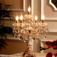 - Лампи а ла барок се отличават със своята масивност, великолепие и прекомерен декор. В съвременната интерпретация това може да бъде устройство с няколко нива на нюанси или жирандола (фигурен разклонен свещник) със светодиоди под формата на свещи..