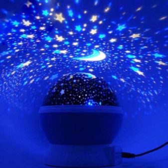 - Когато избирате лампа, първо трябва да се съсредоточите върху възрастта на човека, за когото е предназначена.. За най -малките музикална нощна играчка ще бъде най -добрият избор. За по -големи деца можете да закупите въртящо се устройство или истински планетариум..