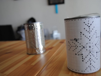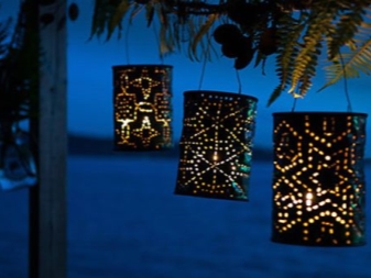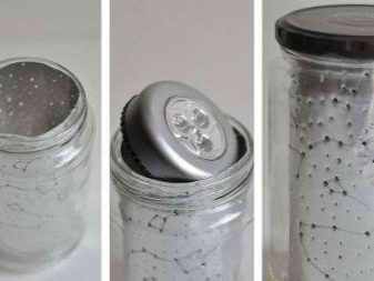 В този случай във фолиото се изрязват дупки. След това се взема чист стъклен буркан. Фолио с подходящ размер се навива в тръба и се поставя вътре. Лепилото, предварително нанесено върху фолиото, го фиксира около краищата. След това вътре се поставя свещ и бурканът се затваря с капак. Светлината е готова.