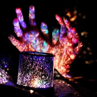 Устройствата, направени под формата на цилиндър или топка с функция на въртене, имат различен ефект. Стените и таванът, осветени от такова устройство, напомнят повече за снимки от космоса или светлината и музиката на нощен клуб..