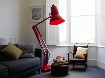 Необичайно решение ще бъде подовата лампа-прожектор. Изненадващо, от няколко години прожекторите преминаха от професионална употреба към елемент от домашния декор. Такова устройство е най -подходящо за четене, тъй като при тази форма светлината не се разсейва, а се насочва строго към определено място..