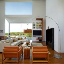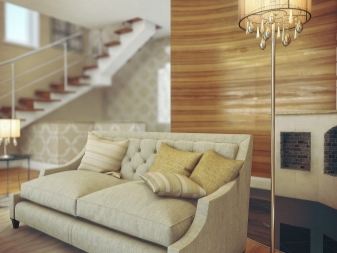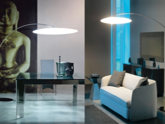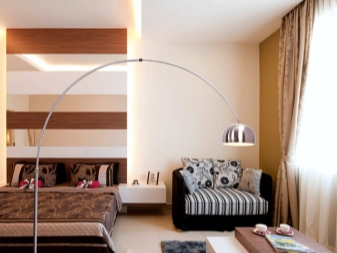 - Дизайнерите често използват подови лампи като инструмент за зониране на стая. с цел визуално промяна на стаята, увеличаване на пространството, скриване на недостатъци;