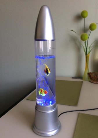 Ярки и цветни подови лампи с риби носят подобна функция.. Такова устройство е особено популярно в детския интериор. Детето с удоволствие наблюдава плуващата риба, докато очите му почиват максимално.