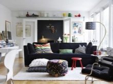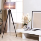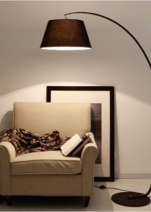 Не се страхувайте и избягвайте черен подова лампа. Както знаете, черното е класика, то е най-универсалното, то е подходящо решение за минимализъм, хай-тек, етнически стил и дори изискан барок. Вечер и през нощта черен абажур ще внесе атмосфера на мистерия и уютен здрач.