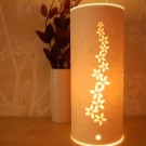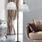 - Друг представител на селския стил – Прованс. Една от отличителните черти на страната е цветовата гама в синьо и бяло. Абажурът е изработен от памук в нежни цветове с орнаменти. Можете също така да намерите декорация под формата на бяла дантела;