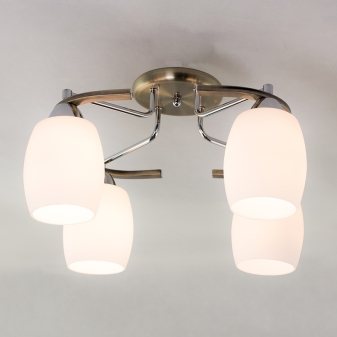 - “Плутон”. Комбинацията от хром и бронзов метал със снежно бели нюанси изглежда строга, но елегантна. Този модел е идеален за стая, декорирана в лаконичен модерен стил. Универсалният дизайн ще изглежда страхотно във вашия офис, хол и кухня. Колекцията включва два вида устройства – за 4 и 6 крушки.