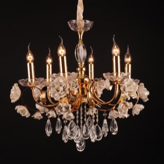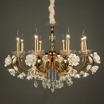 - “Дейзи”. Модел с подобен дизайн в духа на Ренесанса се различава от предишните с деликатен цветен декор. Елегантните златни плафони, обрамчени от прозрачен кристал, са съчетани със снежно бели рози и висулки, блестящи на светлината. Трудно е да си представим по -луксозна и романтична версия на полилея с класически дизайн..