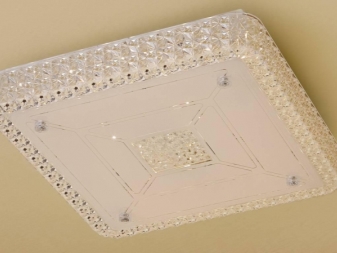 - “Диамант”. Полилеите със сянка, направени под формата на фасетиран скъпоценен камък, изглеждат стилно и ефектно. Устройството се характеризира с компактен дизайн, висока яркост и оптимален набор от светлинни режими. Моделите за събиране са оборудвани с дистанционно управление с опция за памет, възможност за регулиране на цветовата температура. Има и деликатен режим на нощно осветление, възможност за регулиране със стенен превключвател.