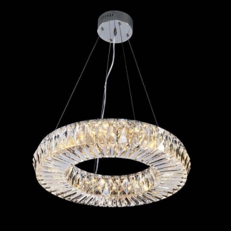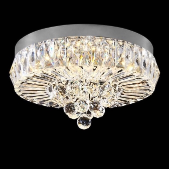 - “Тачо”. Тази колекция включва няколко варианта на кръгли кристални полилеи. Голямото огледало, обрамчено от блестящи кристални кристали, изглежда просто луксозно. Такъв полилей ще украси както хол в модерен стил, така и стая с богата декорация “дворец”. Моделите се предлагат в хром и златни цветове.