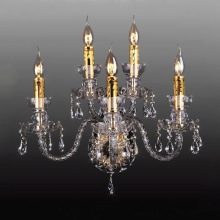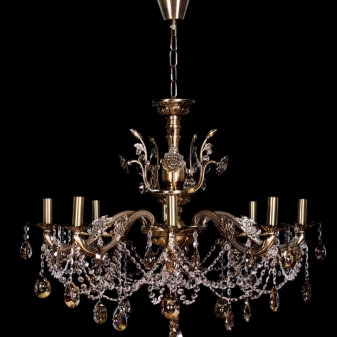 Бронзовите полилеи с кристална декорация са елегантни и подчертават деликатния вкус на собственика си. Изработени са с отлита основа, извити ръце, допълнени от кристална купа и източници на светлина под формата на метални свещи. Подсилен на дълга бронзова верига с дължина до 50 см, която може да се регулира.