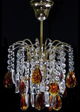 - „Пръски от кран с цвят шампанско“. Висулка полилей, три лампи, с керамични държачи. Кристал и цветен кристал в комбинация, диаметър 300 мм, височина на продукта 400 мм.