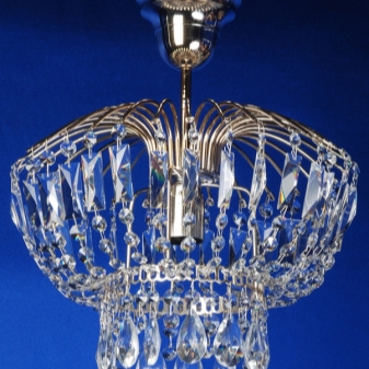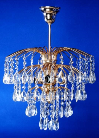 - “Зима”. Бестселър, модел с една лампа, висящ, закачен. Тип – осмоъгълник или конус, прозрачен. Фитингите са изработени със златно или сребърно покритие. С диаметър 250 мм, той има височина 450 мм.