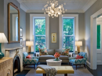 Няма да има тъмни ъгли в една стая, ако я окачите точно в центъра, осигурявайки достатъчен брой крушки. Но не трябва да окачвате огромен полилей с шест крушки в малка стая. За силен светлинен поток е необходима по -голяма стая от тях, така че ярката светлина да не реже очите и да не дразни с прекомерна интензивност.