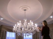 Изберете таванни светлини в хола, кухнята, спалнята или кабинета. Такова нещо принадлежи към най -популярните стоки и поправянето му не е по -трудно от това да го закачите. За закопчаване се използва висяща кука, върху която здраво се държи кристален полилей с висулки. Дължината на куката се регулира така, че в случай на окачен таван, продуктът плътно приляга към нея. За да се предотврати нагряване на опъващия панел, конвенционалните крушки се заменят с LED крушки..