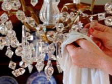 Всеки кристал с висулки трябва периодично да се почиства. Една елегантна лампа е била необходима за премахване и разглобяване, измиване и почистване на всички висулки отделно. Трудният процес на почистване обезкуражи много купувачи да купуват кристални продукти. Днес тези трудности са минало, тъй като е разработен нов препарат за почистване на водна основа. Този състав може да бъде закупен на мястото на растението, той се продава в опаковка, вътре в която има контейнер с аерозол.