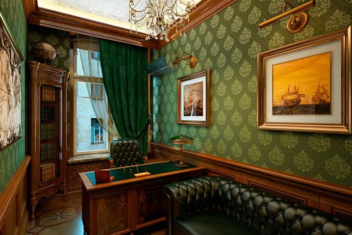 За изследването е избран полилей във формата на свещи с множество класически висулки. Традиционната форма на продукта е висящ модел, който осветява пространството на бюро, изработено от естествено дърво. Всички мебели също са традиционни в бежови тонове. Аркообразен отвор с полукръгъл връх допълва стаята.
