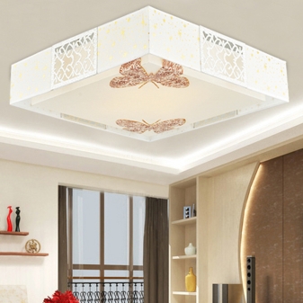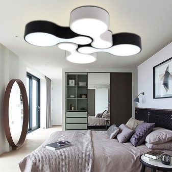 Когато избирате форма, трябва да се съсредоточите не само върху стила на стаята, но и върху нейния размер. Кръглите полилеи, макар и универсални, се предлагат в различни диаметри, докато твърде големият квадратен панел ще изглежда смешен. Най -добрият вариант в този случай би бил да поставите няколко квадратни таванни лампи, които приличат на една композиция..
