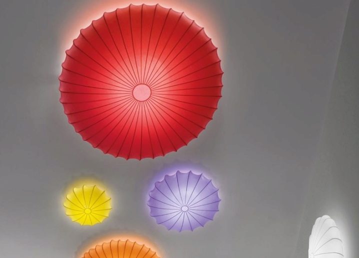 Най-разпространените многоцветни полилеи с плосък таван в детската стая. Те са напълно безопасни за детето, тъй като нямат никакви проводници навън.. За деца се срещат следните цветове и орнаменти: