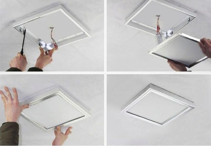 Тънките модели се закрепват директно към тавана по различни начини. Благодарение на големия избор на крепежни елементи, можете да изберете модел за всяко таванско покритие: за опънати тавани, гипсокартон, ламели, греди, тавани на армстронг, грилято и много други. Има както вградени панели, така и режийни. Монтажът на режийни режими може да се извърши дори от непрофесионалист, докато инсталирането на вградена конструкция изисква предварително планиране и внимателна подготовка..