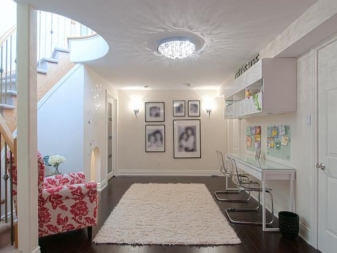 За хола често се избират модели с разнообразни декоративни елементи, например кристални висулки. Те обаче трябва да се използват внимателно и само когато височината на тавана позволява. Огледалната подложка помага за разсейване на светлината, като интелигентно насочва целия поток директно в стаята.