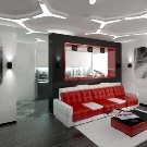 В стилни стаи висока технология често използват кръгли LED модели с голяма площ, тъй като изглеждат по -подходящи в този стил от всички останали. Такъв полилей добре ще осветява цялата площ на малка всекидневна. Неутралната бяла светлина ще запази нотка на сюрреализъм, предпазвайки хола да стане прекалено уютен – това е изключително важно за хай -тек.