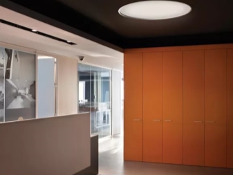 За нежилищни помещения е най-добре да изберете вградени лампи или LED панели. Те се различават по максимална светлинна мощност, но в същото време не изпълняват ненужни декоративни функции, които често се оказват безполезни в нежилищни помещения. Избирайки ултратънка версия, ще се окаже визуално увеличаване на площта на малко помощно помещение; наличието на декоративни облицовки би навредило само.