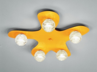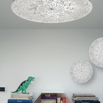 Най-разпространените многоцветни полилеи с плосък таван в детската стая. Те са напълно безопасни за детето, тъй като нямат никакви проводници навън.. За деца се срещат следните цветове и орнаменти: