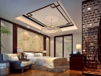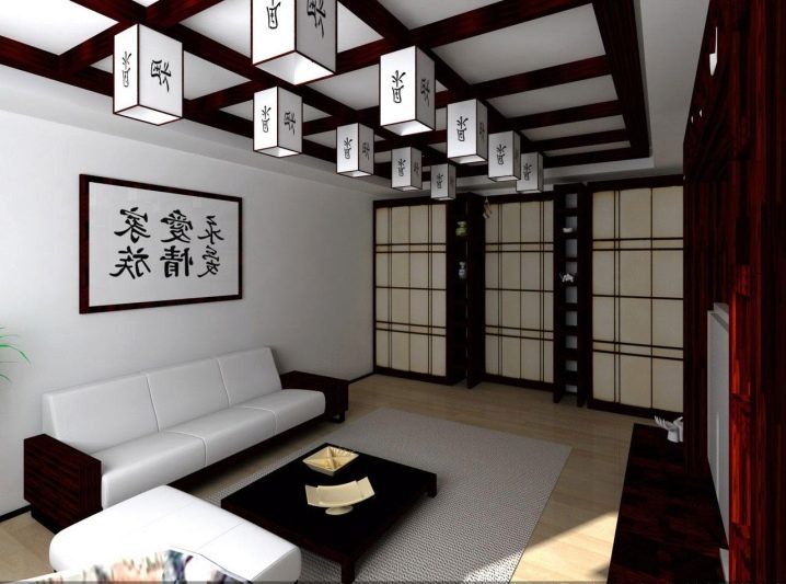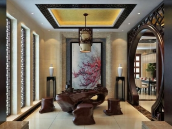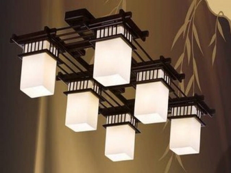 Полилеят играе важна роля тук, подчертавайки уважението към културата. Най -добрият вариант е красива лампа от оризова хартия или матирано стъкло, украсена с йероглифи или изображения на някои важни исторически моменти от съдбата на страната. В такъв интериор не трябва да има много допълнителни лампи..