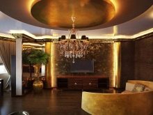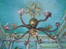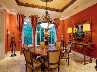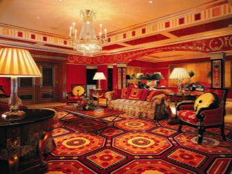За този стил трябва да изберете слънчеви цветове, златни детайли. Полилеите са същите луксозни продукти, украсени със злато и вензели. Този продукт изглежда най -добре в голяма спалня или хол..