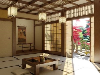 Минимализмът, простотата и удобството са най -важните за японския стил.. Всичко трябва да бъде възможно най -просто и функционално. Осветителните тела са допълнени от икономични енергоспестяващи лампи. Най -много, което ценителите на японската култура могат да си позволят, е един ярък източник на светлина, който се включва при специални случаи..