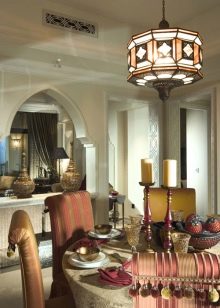 Този стил е пълна противоположност на предишните два. Арабските лампи винаги са богато украсени. Те са украсени с детайли от кристал и скъпоценни камъни или стилизирани за тях метали. Повърхността на лампата може да бъде украсена с различни къдрици и ковани елементи. Що се отнася до формата, в арабски стил лампите обикновено имат вид на куполите на дворцовите кули..