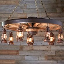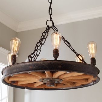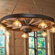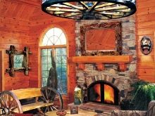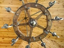 Лампа под формата на дървено колело е идеална за стая с камина. Ако в стаята има мебели от грубо дърво, минимално обработени, този тип лампа перфектно ще допълни интериора..