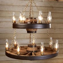 В древни времена каруците и каретите са били основното транспортно средство. Днес те практически не се използват, но отделни елементи се използват в декора. Ако искате да преобразите интериора с наистина уникална лампа, истинско дървено колело от стара количка е най -подходящо за направата на красив полилей. Това ще ви даде елемент с вашата история. Такъв полилей ще стане наистина уникален..