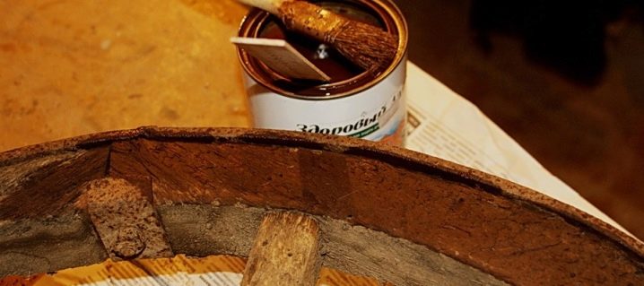 След това трябва да покриете колелото с разтвор на ленено масло с терпентин. Нанесете продукта на няколко слоя. Можете да използвате продукт, който предпазва дървото от гниене и различни външни фактори..