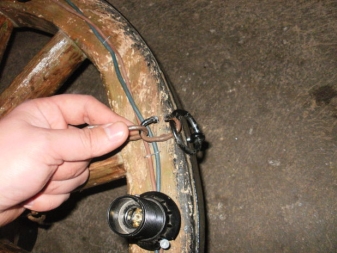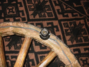 В колелото са направени дупки – вземете предвид размера на лампата. Допълнителни слепи отвори също са необходими за проводници. Размерът е приблизително 15 до 20 мм. С помощта на адаптери патронникът здраво заема мястото си в отвора, предназначен за него. Когато избирате лампи, обърнете внимание не само на външния им вид, но и на мощността, температурата на светлината.