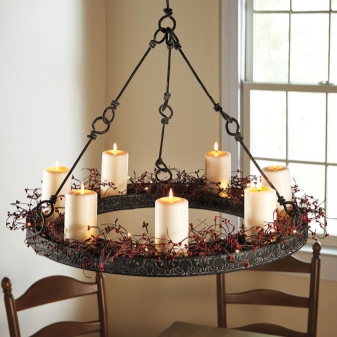 Могат да се използват различни ковани изделия. Основното нещо е да не прекалявате с техния брой, в противен случай теглото на полилея ще се увеличи няколко пъти и ще бъде доста трудно да го фиксирате върху платното. Твърде много декорации ще развалят външния вид на продукта..