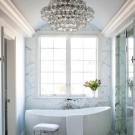 - Необходимо е да се вземе предвид височината на тавана и неговите характеристики.. Ако таванското покритие е матово, тогава е необходимо да изберете полилей с насочени надолу лампи. За лъскав таван можете да използвате полилей с нюанси, насочени нагоре, тъй като гланцът има способността да отразява светлината и да я разнася по стаята. Метален полилей ще изглежда добре при ниска височина на тавана, а лампа с висулки на голям..