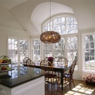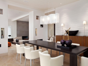 - Важно е да изберете мястото на фиксиране на устройството. В спалнята той трябва да е на разстояние от мястото за спане, а в кухнята, за предпочитане над работната зона. За зониране на пространството трябва да изберете ярка и масивна лампа, която да се откроява на фона на точковото осветление.