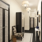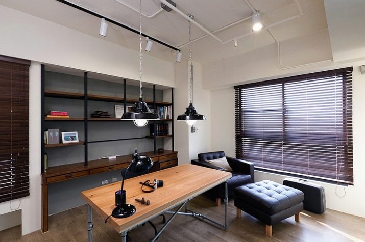 - Към коридора или коридора важно е да изберете полски полилей, изработен от органични материали, а метална или дървена лампа със строга форма трябва да бъде окачена над работното място.