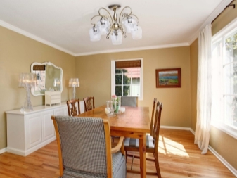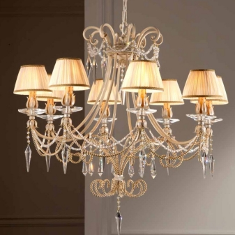 Цветът също играе важна роля при избора на осветително тяло. Тя трябва да съответства на цветовете на стаята и да съответства на останалата част от стаята. Ако имате мебели от светло дърво, не е нужно да купувате лампа с вложки от тъмно дърво. Ако дръжките на вратите са позлатени, полилей със сребърни детайли няма да работи..