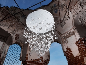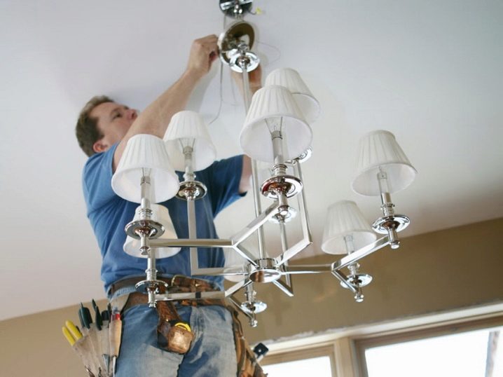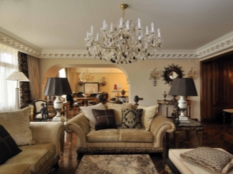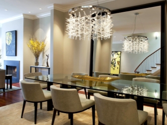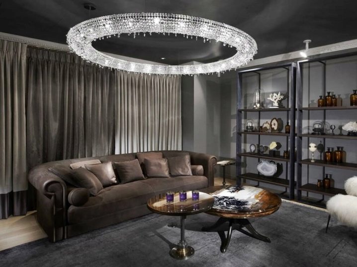 Трябва да се вземе предвид и размерът на стаята. Големите полилеи с ниски висящи елементи не трябва да се монтират в малка стая с ниски тавани..