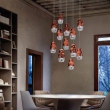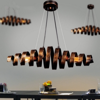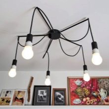 - “Спирала”. Този модел е направен в стил таванско помещение. Комбинацията от метална спирала и стъклени лампи прави тази лампа много оригинална. Цената на полилея ще ви изненада приятно. Това е само 1600 рубли.
