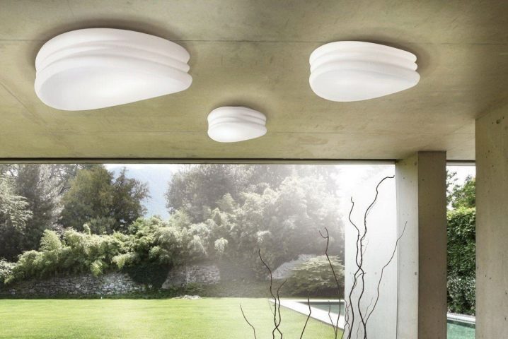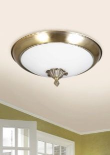Таванните и стенните осветителни тела привличат вниманието преди всичко с техния метод на монтаж и структура. Обикновено такива модели се състоят от плафон, патрон, основен държач, декоративна лента, понякога в комплекта е включен и превключвател, а по -модерните модели могат да бъдат оборудвани със сензори за движение или звук.. Таванните лампи могат да бъдат от два вида монтаж: висящи и вдлъбнати. Първият вариант по -скоро напомня на познат на мнозина полилей, тъй като е окачен от тавана с помощта на фиксираща основа на специална верига. Вградената версия е по -надеждна и по -проста, тъй като е фиксирана директно към тавана и може да бъде фиксирана и към стената.