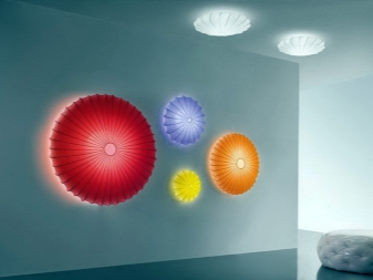 - Много голям размер. За разлика от едни и същи полилеи, стенните и таванните лампи могат да бъдат с напълно различни форми и размери;