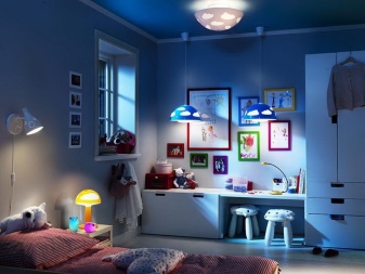 - Детските стаи могат да бъдат направени не само достатъчно осветени, но и светли чрез закупуване на стенни лампи от боядисана керамика или многоцветно стъкло;