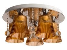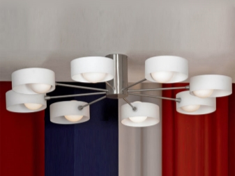 Такива осветителни устройства не са окачени. Полилеят е монтиран директно към тавана. Тази опция ще бъде идеална за стаи със скромна площ с нисък таван. Сенките на моделите могат да бъдат направени и от пластмаса или стъкло.
